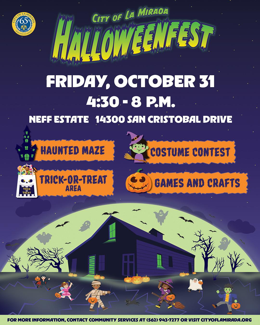 Mark your calendars for a night of thrills and chills at La Mirada’s annual Halloweenfest! On Friday, October 31 from 4:30 to 8 p.m., the historic Neff Estate comes alive with Halloween fun for the whole family. Enjoy a haunted maze, creative crafts, carnival-style games, trick-or-treating, and costume contests (pets included).